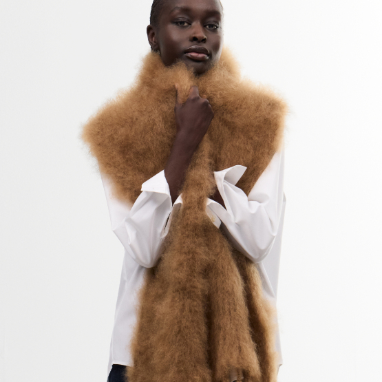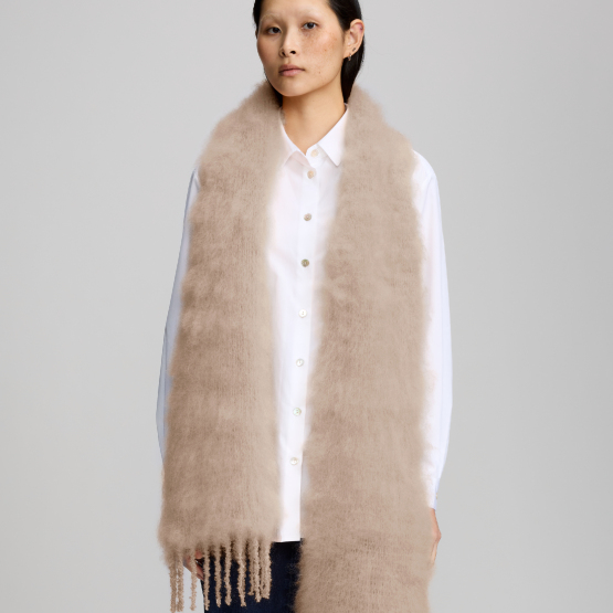 Aurora kid mohair -huivi on ihanan runsas ja pehmeä asuste, joka lämmittää hyvin viileälläkin säällä. Huivi tuo upean lisän asuun ja sopii hyvin myös ylelliseksi juhla-asusteeksi. Aurora-huivi on valmistettu angoravuohen ensivillasta, joka ei ärsytä ihoa.​ Kid mohair on ilmava ja pehmeä luonnonkuitu, jonka vuoksi tuotteesta saattaa irrota hieman karvaa.