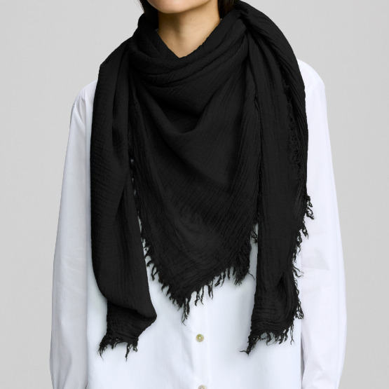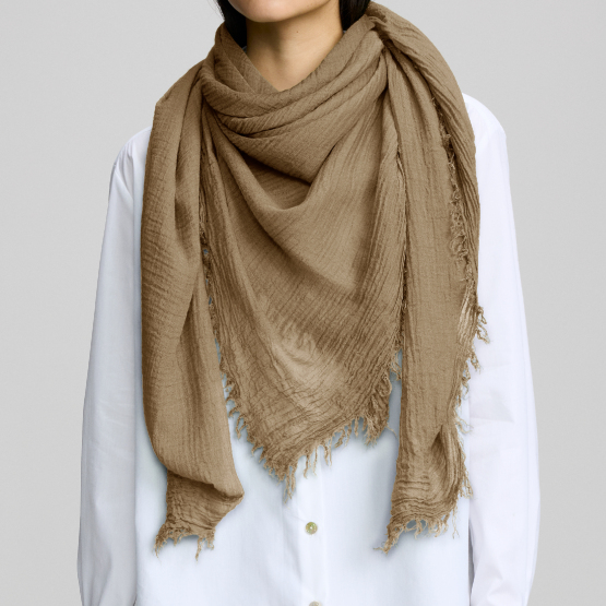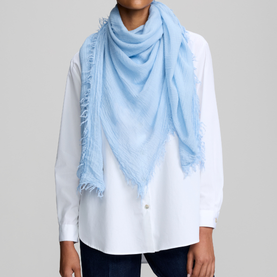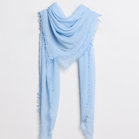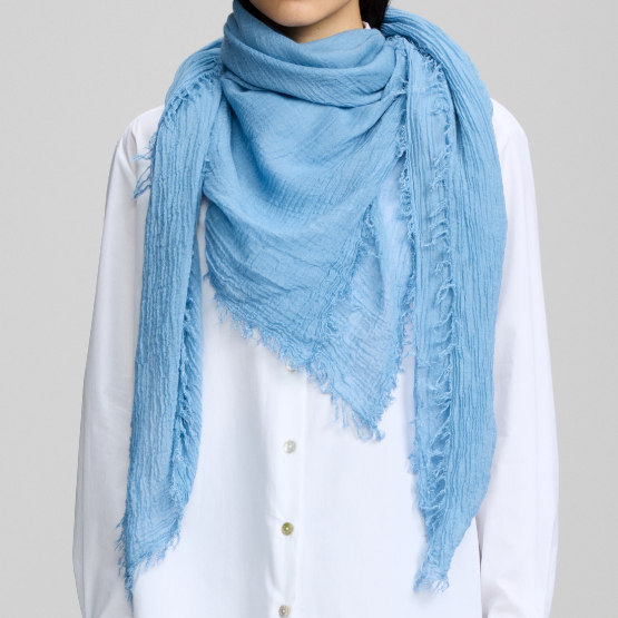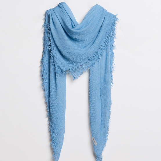 Neliönmuotoinen villasekoitehuivi Marseille tuntuu henkäyksen kevyeltä. Kevyt ja ilmava hapsuhuivi on täydellinen asuste kevääseen ja kesään. Huivi sopii niin sisä- kuin ulkokäyttöönkin. Huomioithan, että huivin pintakäsittely rypistää huivia hieman kasaan ja todellinen koko voi vaihdella hieman ilmoitetusta.