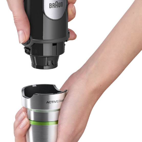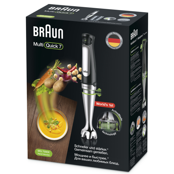 Braun Multi Quick 7 sauvasekoitin hyödyntää ActiveBlade -teknologiaa, jonka ansiosta sen pystysuorassa liikkuva terä murskaa ja soseuttaa tehokkaasti kovimmatkin ainekset myös kulhon pohjalta taaten täydellisen samettisen lopputuloksen hetkessä.