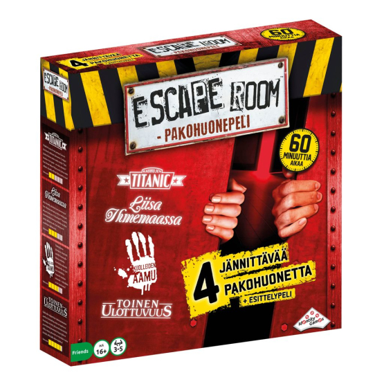 Lukitse itsesi ja ystäväsi pakohuonepelin ääreen ja ratkaise vapauttava nelinumeroinen koodi ennen kuin aika loppuu. Sisältää neljä uutta peliä ja vihjeet, aikaa laskevan dekooderin ja pelisäännöt. Paristot 3 x AA eivät sis. Suomenkielinen. 16+