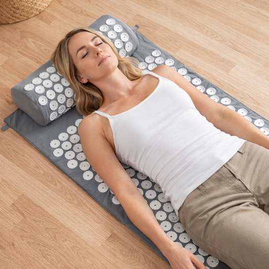 Tässä piikkimatto ja -tyynysetissä on tuhansia pieniä piikkejä, jotka tarjoavat kohdennettua stimulaatiota jännityksen lievittämiseksi, kipujen vähentämiseksi ja rentoutumisen edistämiseksi.