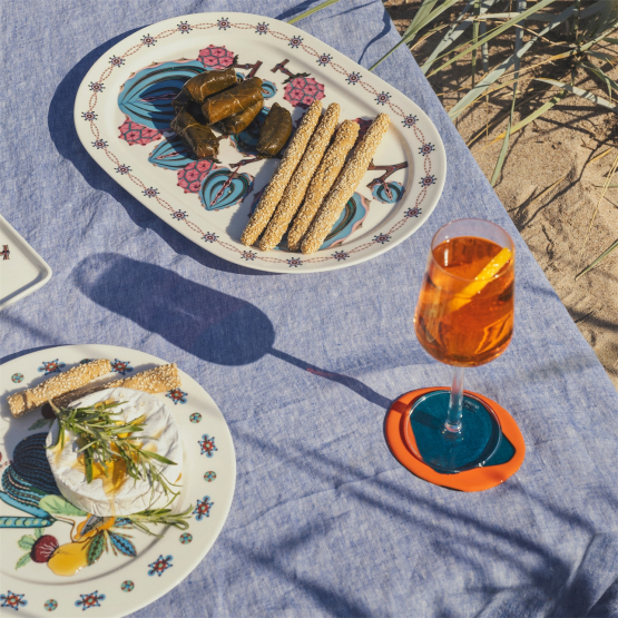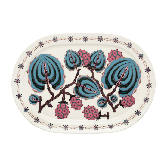 Taika Sato yhdistää Klaus Haapaniemen runsaan hedelmä- ja vihanneskuvion Heikki Orvolan suunnittelemaan funktionaaliseen muotoon. Värikkään kuvion lukuisat yksityiskohdat korostuvat kauniista valkoista taustaa vasten. Tämä näyttävä tarjoilulautanen on täydellinen valinta leivonnaisten ja hedelmien tarjoiluun. Se ei ole ainoastaan käytännöllinen vaan myös kaunis esine sellaisenaan, mikä tekee siitä erinomaisen lahjaidean. Taika Sato -sarjan avulla luot näyttävän kattauksen tai tuot eloa hillitympään kattaukseen. Tarjoilulautanen on mikrouunin ja konepesun kestävä.