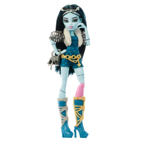 Koristeellisten ovien takaa löytyy Frankie Stein -muotinukke ja upeita vaatteita ja asusteita, joilla loihdit kymmeniä erilaisia persoonallisia tyylejä Monster High -koulupäiviin.