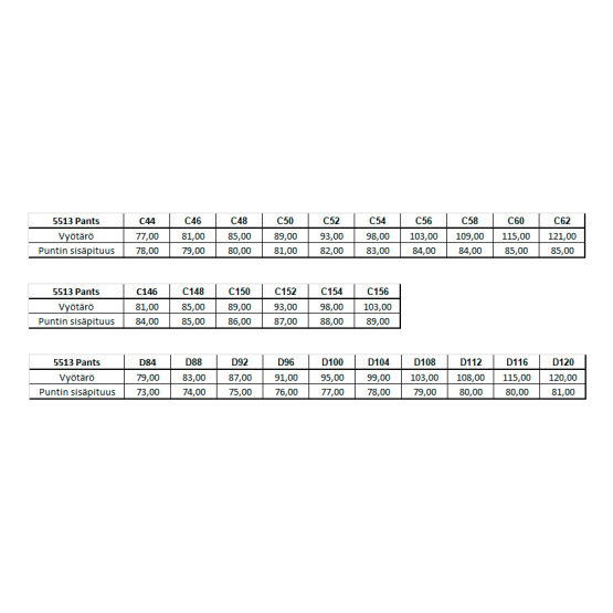 Katso kokotaulukko tästä linkistä (PDF)