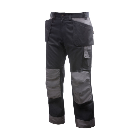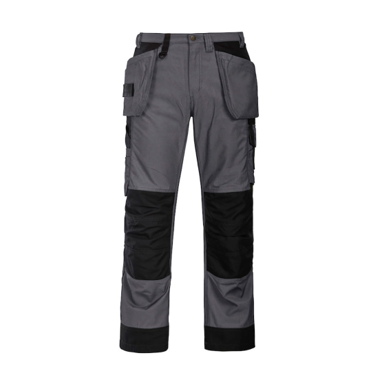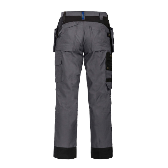 Reidet vahvistettu kaksoiskankaalla. Reisitaskuissa tilat puhelimelle, ja kynille sekä työkalutasku. Kaksi säädettävää vasaralenkkiä.